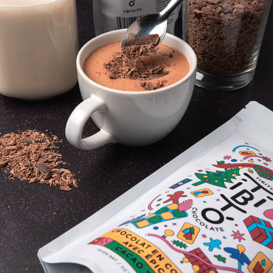 Bundle Tibito Noël : Tibito propose une édition limitée exceptionnelle : une tablette de chocolat 70 % cacao sublimée par un mélange chaleureux d’épices de Noël – cannelle, cardamome, gingembre, poivre et une pointe de sel.