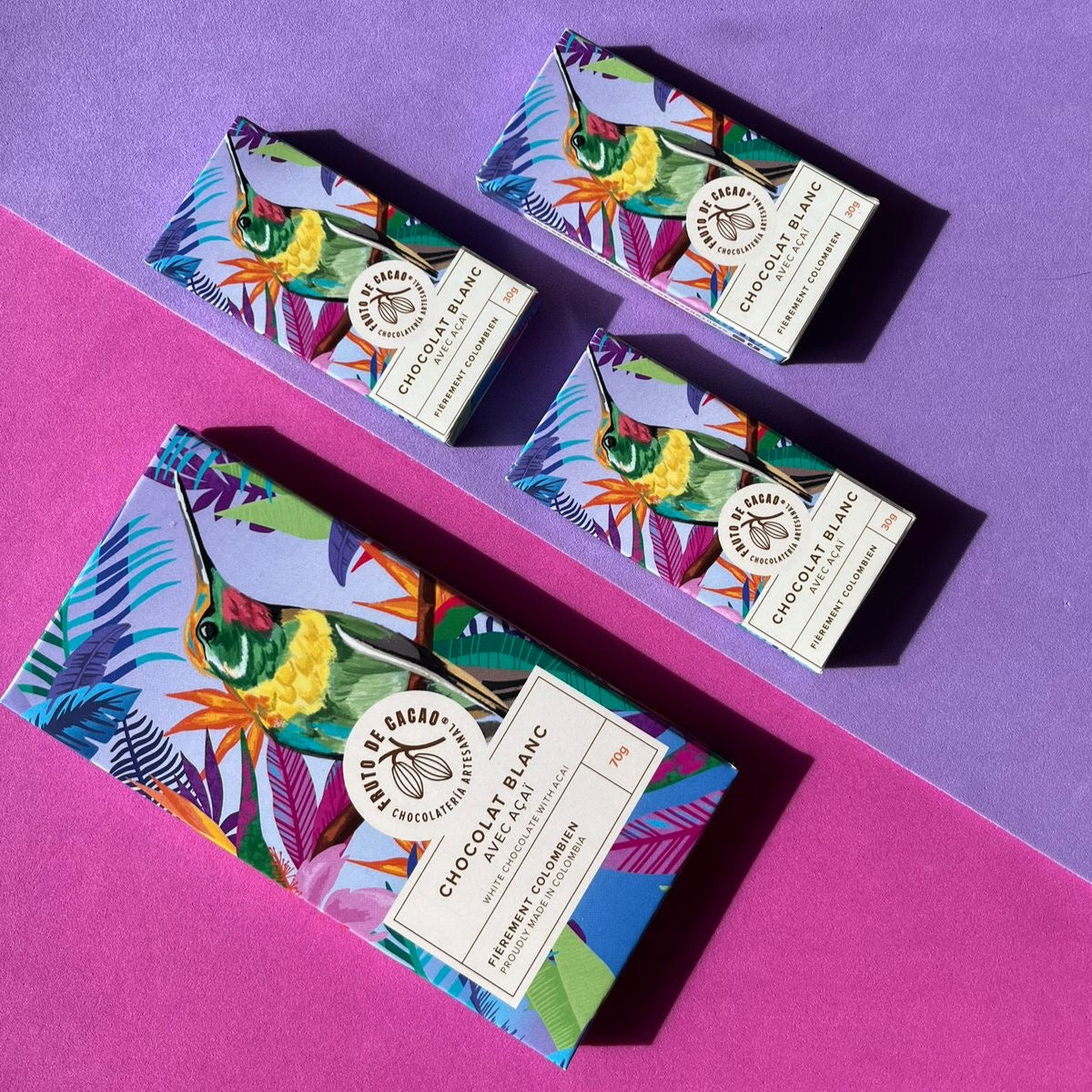 FRUTO DE CACAO Tablette Chocolat Blanc à l'Açaï